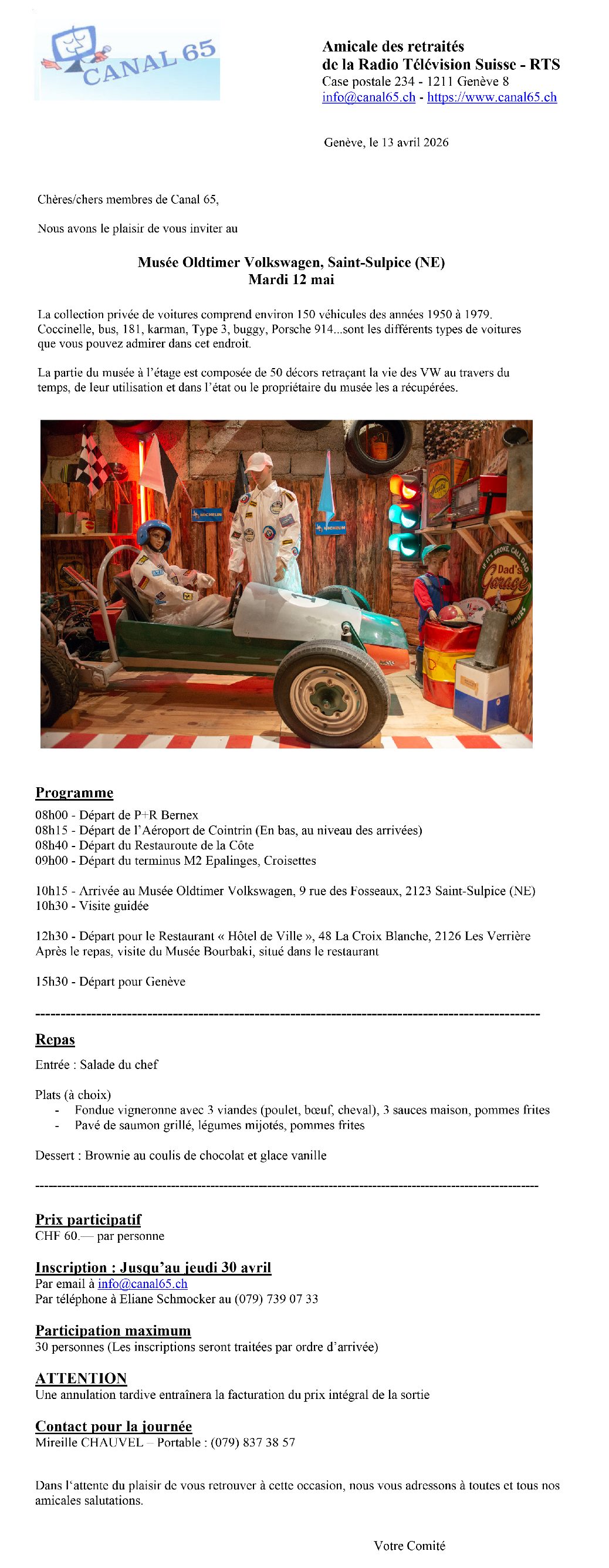 Invitation-Musée Oldtimer Volkswagen, Saint-Sulpice (NE) Mardi 12 mai